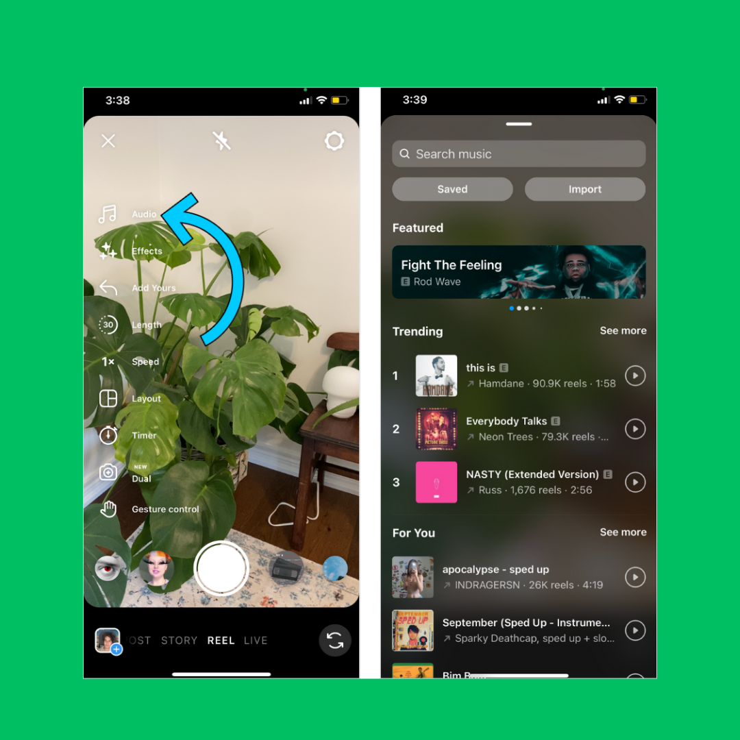 Use trending songs or participate in popular reel formats like "Glow-Up," "Mini Vlogs," or challenges.