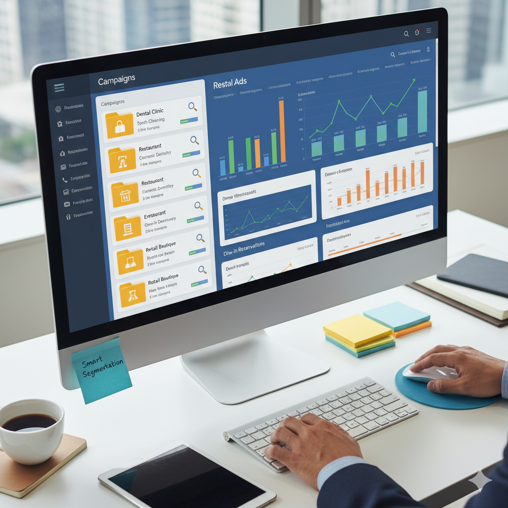A dental clinic could run separate campaigns for “teeth cleaning” vs. “cosmetic dentistry.”